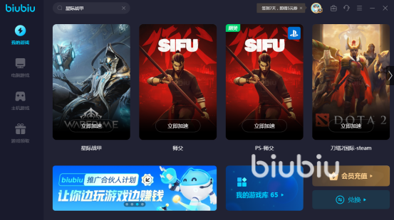 电脑上有很多的游戏,在玩的时候都需要有好的网络,包括星际战甲这款游戏,推荐大家可以下载biubiu加速器,也是因为这款加速器可帮助解决各种游戏出现的掉帧,甚至是卡顿掉线等网络问题。支持海量的游戏,不管是如今热门的游戏还是冷门的游戏,都可通过下载应用以后,利用强大的搜索功能完成游戏搜索,只要是在应用当中可显示出来的,都可点击立即加速按钮,完成网络优化。