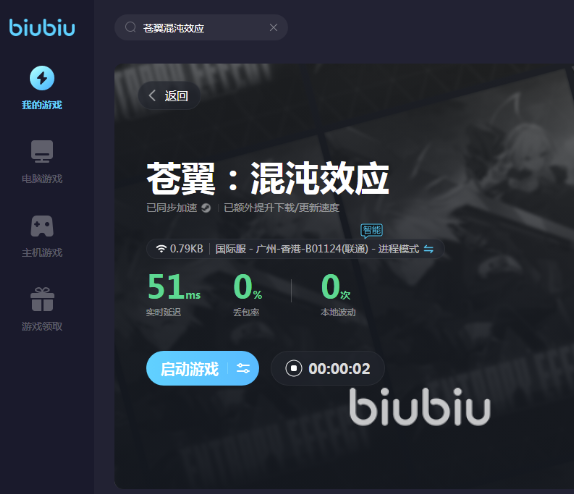 降低ping值的同时将丢包率控制为零,从而让游戏变得更加流畅丝滑,后台的各项加速数据都是清晰看得见的。如果大家的当前已经下载好该游戏的话,biubiu是可以自动识别出来,这样就不需要来回切换界面了,为大家节省了很多时间。