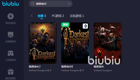 biubiu不仅只支持暗黑地牢这一部作品,3000多部作品都能在这里搜索,搜索之后有多种选项,包括主机、电脑游戏等,当免费加速福利过后,我们可以选择带有限免图标的游戏进行体验,可以限时免费应用。如此高端的加速器相当人性化,也有超高性价比。