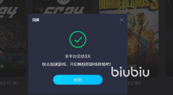 通过现在官方推出的活动更是让人眼前一亮,因为不管是新注册的用户还是老用户,都可以享受免费加速时长,新用户一共可享受96个小时的加速时长。领取方法需要先注册登录,获得24个小时的加速时长,然后通过兑换码福利来领取免费三天的加速时长,兑换码福利需要正确输入兑换码【biubiu不卡顿】,就能成功的领取到,也是老用户能领取到的。