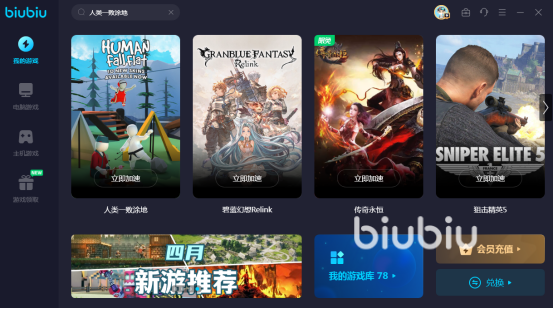 2024年04月15日 15:13 来源:梅肯生比比鸟人类一败涂地是一款很多玩家都喜欢玩的益智闯关游戏,可通过多人协作的方式来帮助自己,顺利的完成闯关,拥有轻松搞笑的氛围。那么人类一败涂地卡顿怎么解决呢?在这种游戏当中虽然整体的风格是比较轻松益智的,但玩家也需要利用一些物理效果来解开谜题,才能帮助自己逃出梦境,所以有卡顿的问题容易影响玩家的操作,玩家都可下载biubiu加速器来进行解决。