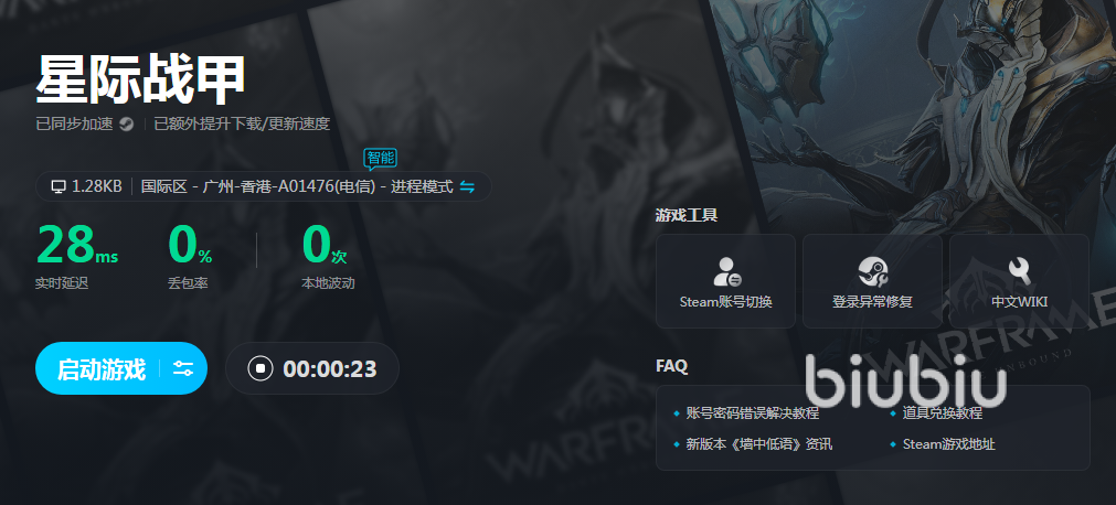 已经了解星际战甲掉帧卡顿怎么解决的小伙伴现在就来试一试吧,大家还可以到biubiu官网去下载它的其他端口,biubiu的全平台会员是在多端口通用的,之后加速手游的时候也能登录同一会员账号享受加速服务了。