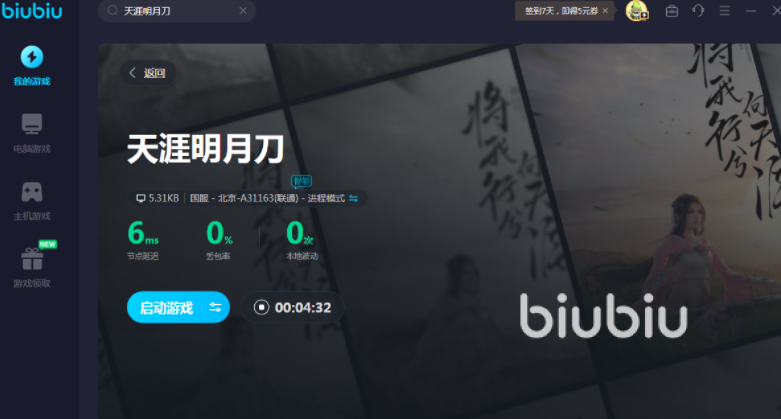以上就是天涯明月刀掉帧卡顿怎么解决的内容介绍,要知道当游戏过程当中有掉帧的问题或者是卡顿的问题,都会使整个游戏画面受到影响,不能好好玩游戏,推荐大家下载今天介绍的biubiu加速器。