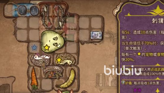 需要注意一点,我们只需要两把弓,多的没有必要,因为耐力跟不上。如果前期有菠萝的话,可以优先购买,因为它每4秒回获得1层尖刺效果,并恢复3点血量,不仅能提供伤害还能恢复生命。