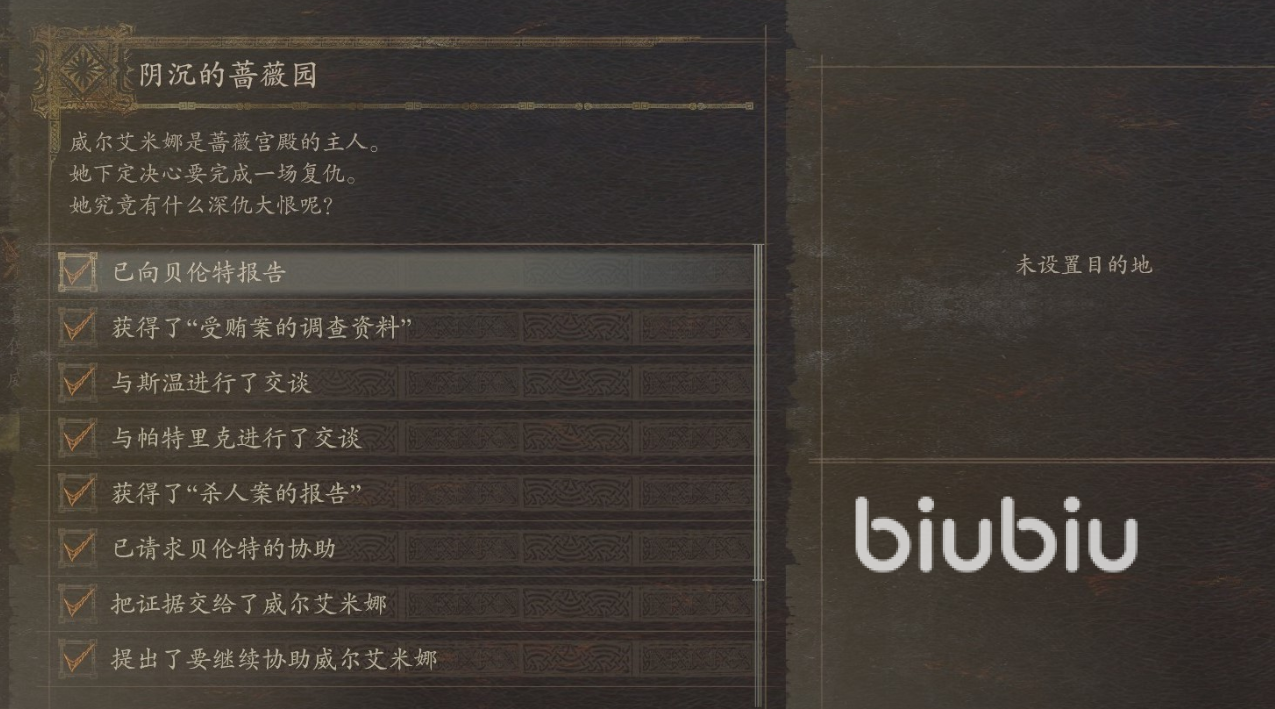 想要触发该任务,首先需要大家完成下面两个前置任务,第一个任务是参加假面舞会,这里会被其他客人识破,但是老板娘会过来救场,第二个前置任务是去大臣的房间搜索信件,这里也会被发现,但是老板娘还是会来救场。完成前置任务之后,玩家要去蔷薇园的3楼找到这个老板娘,这里玩家并不会见到老板娘,通过和员工对话得知老板娘正在接待贵客,我们要从门上的偷窥孔偷窥房间,偷窥完成后再见到老板娘就能触发任务阴沉的蔷薇园了。
