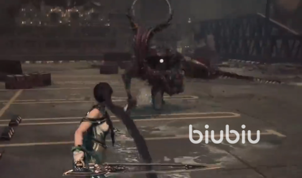 当我们到达停车场的空地处便会进入到BOSS的开场动画,动画结束后亚巴顿就会朝我们冲过来,我们这里先进行躲避。如果发现BOSS举起大刀,则代表它即将施展斩击,我们这里可以用叠返来进行完美招架。