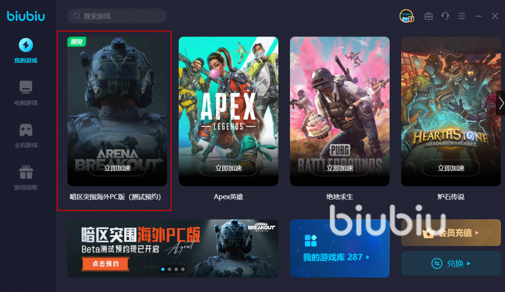 在steam上架的暗区突围游戏大家是不需要花钱体验的,这是一个免费游戏,不过目前游戏还没上线,所以小伙伴们只能先预约,预约渠道点击上面链接就可以看见了,虽然biubiu只是个加速软件,但是小伙伴们在里面去搜索暗区突围游戏的话是能进行一键预约的,避免小伙伴们后续错过游戏的上线时间。在游戏正式开服之前,小伙伴们也可以用这个加速器给其他的游戏进行加速,提前感受一下它的能力。