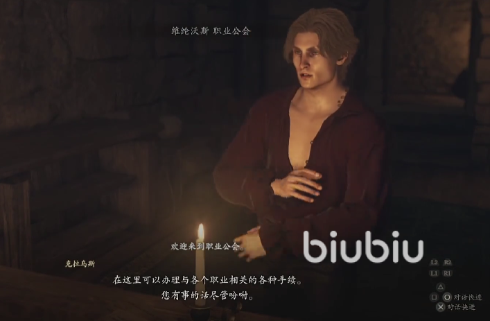 玩家在经历过前期的剧情之后就可以从梅维村离开,来到繁华的人类都城维纶沃斯,这里有很多设施,在酒馆旁边一点的位置就是追随者工会了。在这个地方就能够接取到任务被封闭的钻研,进去之后找到柜台后面的NPC克拉乌斯,长按进行对话就可以开启。