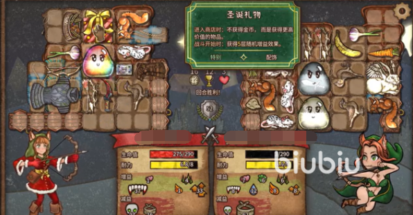 以上就是为大家介绍的背包乱斗圣诞礼物的内容了,其实说到底,这就是游戏官方为了增加节日氛围做出的一个活动,在圣诞期间,玩家进入商店就能够领取,然后在里面开出一些道具。由于道具的属性不同,大家是有可能开出能帮助战斗的有利装备的。除了这个圣诞礼盒之外,这款游戏里面还有很多有意思的东西,比如各种黏黏怎么合成,各种道具怎么摆放等等,大家可以下载试玩一下哦。