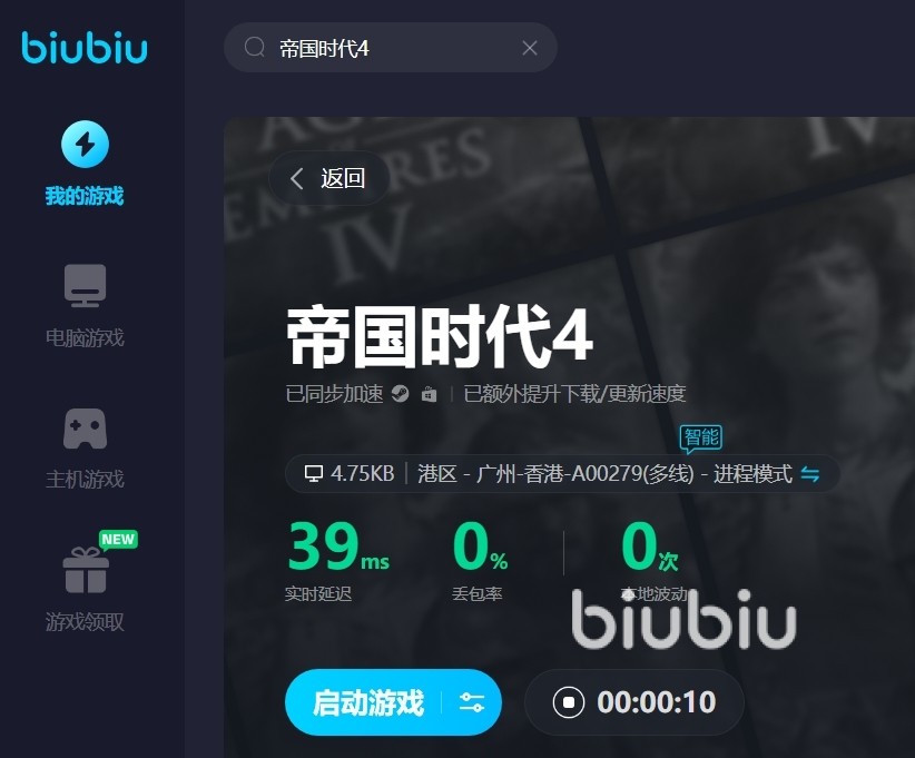 上述就是帝国时代4掉帧卡顿怎么解决的方法分享,如果说玩家沉浸式的投入游戏的话可能会觉得这是一部中世纪的历史游戏,游戏中也会引入一些欧洲著名的历史事件来作为背景故事。那玩家想要高质量的体验整个游戏内容就选择biubiu的加速吧。