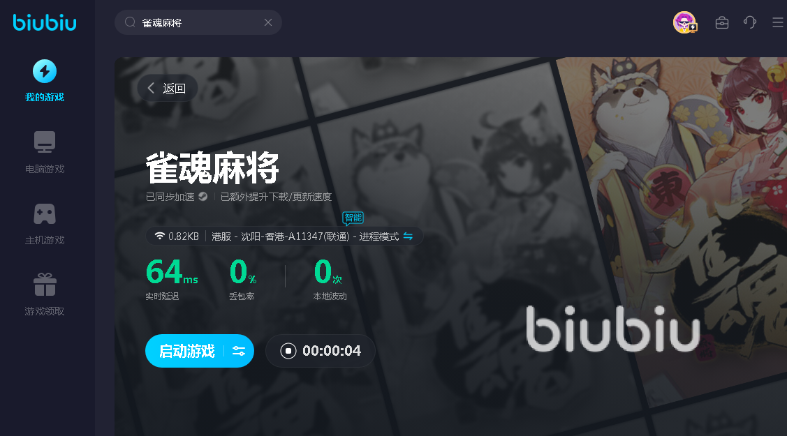 下载好biubiu之后,大家可直接在其中找到雀魂麻将,完成加速处理,会同步为我们加速steam平台,大家想要下载或者是更新游戏也可以顺利的完成,能够提高500%的速度,帮助小伙伴们早日参与游戏对局。同时详情界面还能展现当前的加速状态以及网络波动次数,可直接在此界面启动游戏,不想体验的直接关闭即可,不会有任何影响。在体验过程中,我们也可以随时切换应用,观看不同的软件,使用起来很是方便。