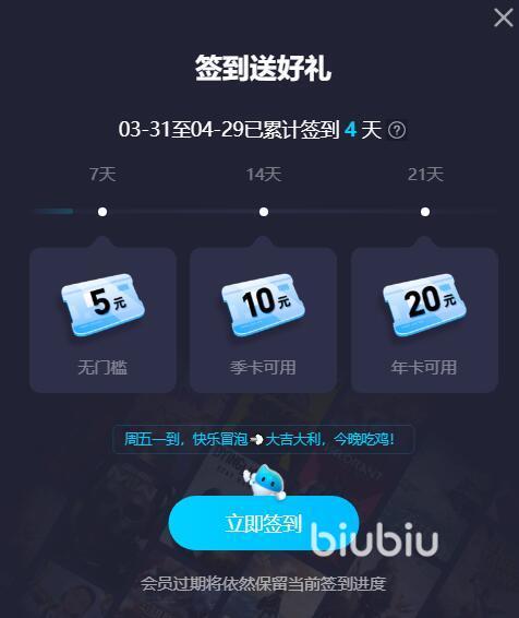 应用中新加入了签到系统,大家每天上线完成签到后,就能兑换到一定额度的优惠券,在购买会员时,可以直接进行抵扣,为你节省购号成本。此外,biubiu加速器内还添加了许多福利活动,新用户注册使用就能领到24小时的加速时长,所有用户只要输入了兑换码【biubiu不卡顿】,就能领到3天的加速时长。