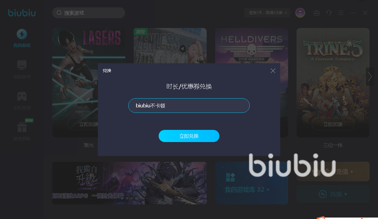 针对新用户,biubiu还拥有新手扶持活动,首次注册可获取24小时免费加速时间。同时所有玩家还都有一次领取3天免费加速时长的机会,只需要在兑换界面输入【biubiu不卡顿】即可领取,非常的便捷。相信在有了这么多时间的体验之后,大家对于biubiu应该都有的更深刻的了解,它的加速效果是否给力,在此期间大家都能判断出来。体验好了再继续选择包月或者是包年都是可以的,价格相当的优惠,每天折算下来只需要几毛钱即可。