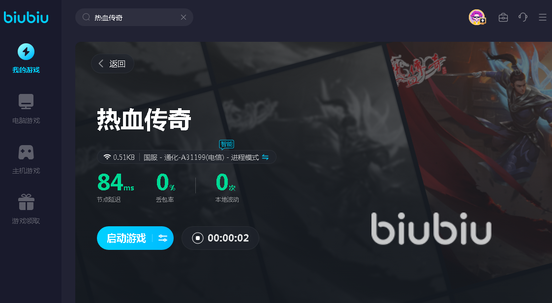而且biubiu的加速方法也是很简单的,没有过多复杂的步骤,直接在首页搜索框内输入热血传奇,然后就可以开启加速了,是不是很简单呢,加速之后详情界面还能看到加速的网络状态,一旦出现波动或者堵塞的情况,玩家都能直观的看的出来。同时在此界面我们也可以快速启动游戏,随时想玩都是可以在这里打开的。