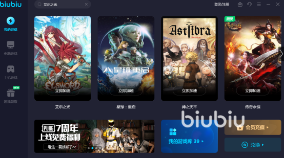 biubiu第一个优点就是支持海量的游戏加速,这对于每个喜欢玩游戏的玩家来说,只需要一款应用,就能够帮助每个游戏在玩的过程当中享受流畅的体验,解决网络问题。不管自己喜欢玩什么类型的游戏,还是任何一款电脑游戏,为了避免在游戏的过程当中出现卡顿或者是掉线,都可提前下载。另一个优点就是涵盖全球的加速节点,加速的时候会优先选择比较好的网络,感受流畅体验。