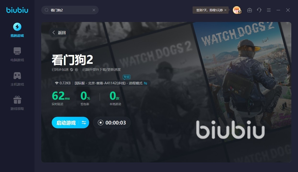 看门狗2里的玩家可通过手机黑进汽车、红绿灯等。这款游戏的自由度和玩法也是让各位玩家对其爱不释手。可是此游戏对于网络要求也是非常的高,很多小伙伴更是不知道这款游戏的多人在线模式需要用到加速器来进行加速才能游玩。说到游戏的在线模式就一定要用到这款biubiu加速器了。线上模式的玩法就会涉及到更高要求的网速了,小伙伴们就会好奇这款加速器的加速效果真有那么快吗?