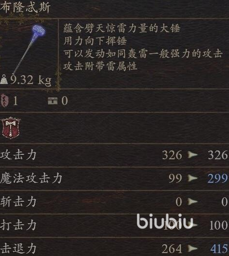斗士的布隆忒斯是一把蕴含劈天惊雷力量的大锤,用力向下挥锤可以发动如同轰雷一船强力的攻击。它也是一把物理魔法攻击力双修武器,常驻百分之一百二十雷属性攻击。并且有极高的击退力,配合上斗士的蓄力技能,针对高大的怪物也毫不害怕。它的获取位置大概在沙漠地区巴克巴达尔西侧,我们走到附近便可以发现一个魔物暗窟洞穴。向深处探索的时候会遇到几只硬皮蜥蜴,击败它们之后就会出现一个宝箱,里面就有这把武器。
