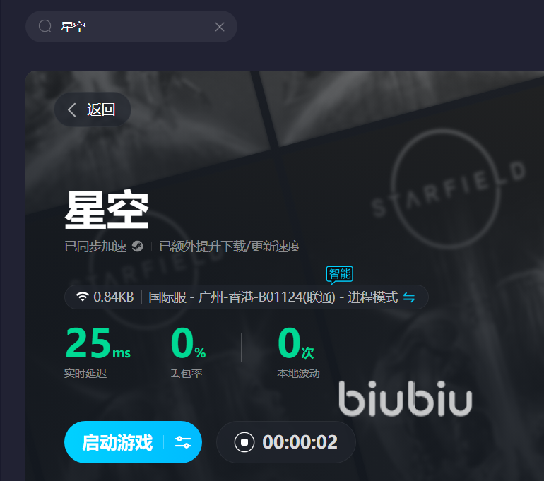 biubiu加速器是一款非常专业的加速器,拥有着丰富的海内外节点和线路。它会根据玩家当前的网络环境优先连接最适合的选项。如果你是第一次使用,可以点击小编提供的链接直接安装下载。然后,在首页输入星空游戏名称,就可以看到相应的游戏版本。选择自己所在的区服,启动加速即可。关于操作问题,也可以简单介绍一下。只需启动加速后放在后台自动运行即可,退出游戏时记得停止加速。