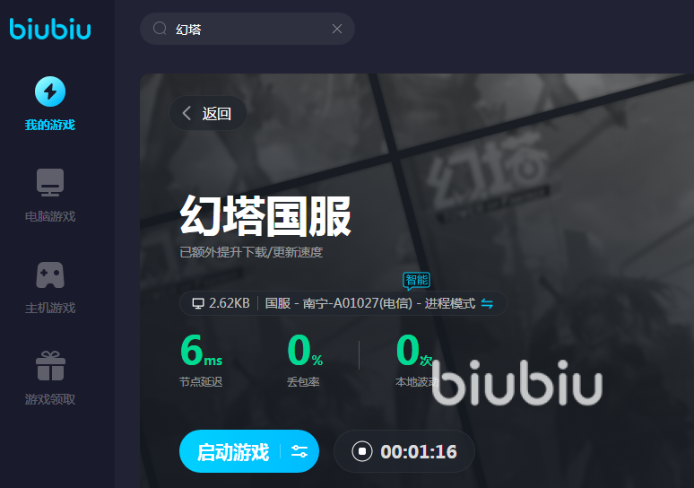 通常情况下游戏延迟非常高不是电脑本地DNS出现故障,就是网速太慢了,只要是这些原因引起的延迟,biubiu都能够解决。它就是专门用来给游戏加速的软件,安全又正规,现在还开启限时免费加速幻塔国服活动,大家赶紧来试一试。