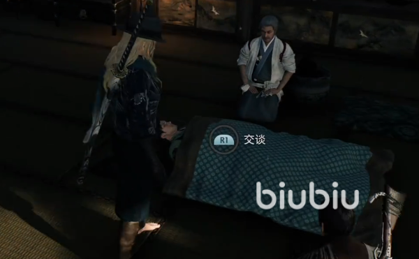 首先我们直接传送到长州藩京都府邸,接着往里面走二三十米便可以看到卧病在床的高杉。我们对着他按下R1进行交谈,这里需要选择去京都郊外东北边的山中小屋拜访一名武士。