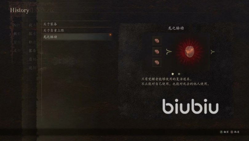 准确来说这个道具叫做“龙之脉动碎片”,三个可合成一个龙之脉动,消耗一个龙之脉动即可复活一个角色,包括自己以及NPC。但复活随从不需要任何道具,因为他们的死亡也仅仅只是回到异界,并不是真的阵亡。如果有什么关键NPC意外死亡,去墓地找一下使用一个龙之脉动就能让其死而复生,自己阵亡的话使用也能原地复活。