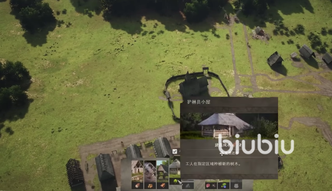 树木资源是很重要的,前期没办法才会一直在外面砍,但是想要发展光靠砍并不够。在有新人口出现的时候就可以建造种树小屋,这样就可以获得可再生的树木资源,在居民区周围圈一块地方进行种植,等待树木成长,就可以保证后期有木材可以用了。