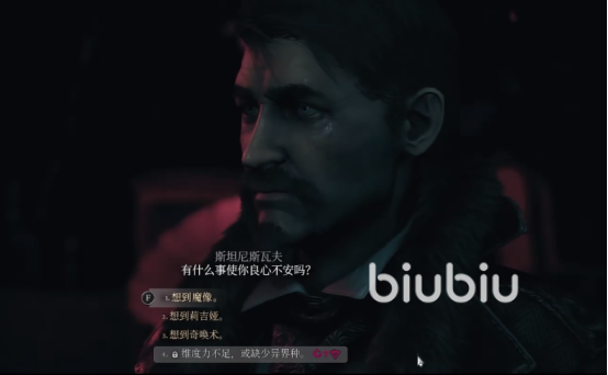 之后画面一转,来到了一片漆黑区域,左上角提示着夏季的最后一天,需要决定下一步的行动。我们在这里会听到年轻的阿保利茨等人过去的对话,在经过不断探索,我们见到了斯坦尼斯瓦夫。他表示要对我们进行一场良心的审判,问有什么让我们良心不安,我们根据自己想的来选。