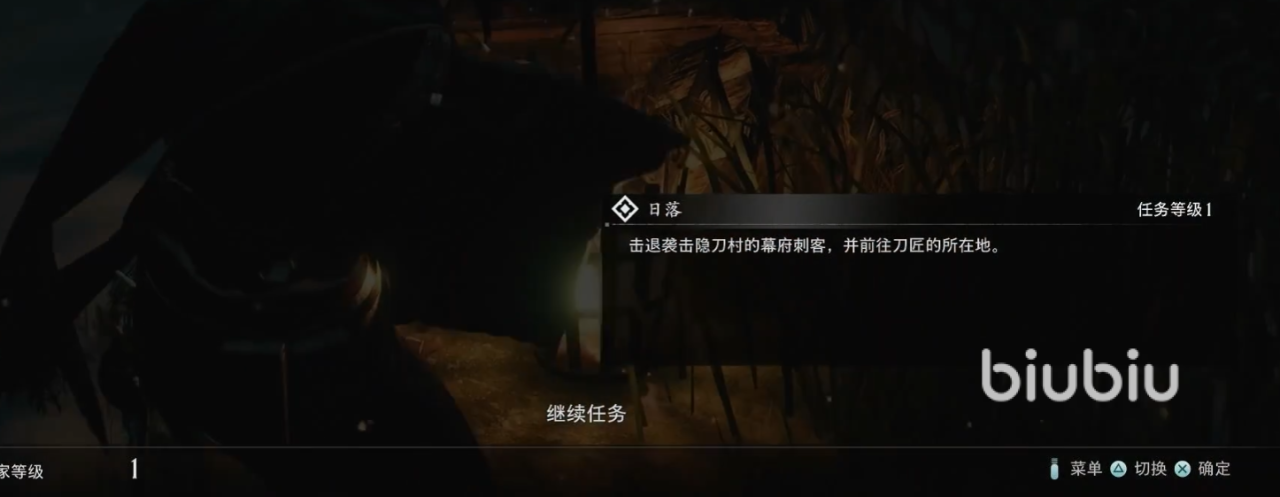 日落任务首先需要玩家前往刀匠的所在地,一路上有着众多的幕府刺客,玩家击败这些刺客后可以获得一些新的武器,路上也可以搜索一下,会有一些药丸等道具。当击败忍者后还会获得新副武器——手里剑,这个副武器可以随时装备并使用,我们之后走到刀匠的门口有一处存档点,记得可以点亮门外的旗帜。