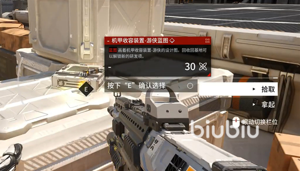 游侠机甲:游侠机甲的蓝图位于沙漠区域的探测中心外围。在探测中心外围楼梯的右手边,靠近一堆箱子,可以看到一个红色的机甲收容装置-游侠的蓝图。