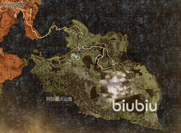 玩家需要上来先完成维伦沃斯的所有任务,只有贝伦特会给你通行证到达巴达尔,穿过巴达尔之往东南方向走就是火山岛。该地是游戏后期的地图,很多高面板的发光武器都是从火山岛营地的商贩里购买而来。