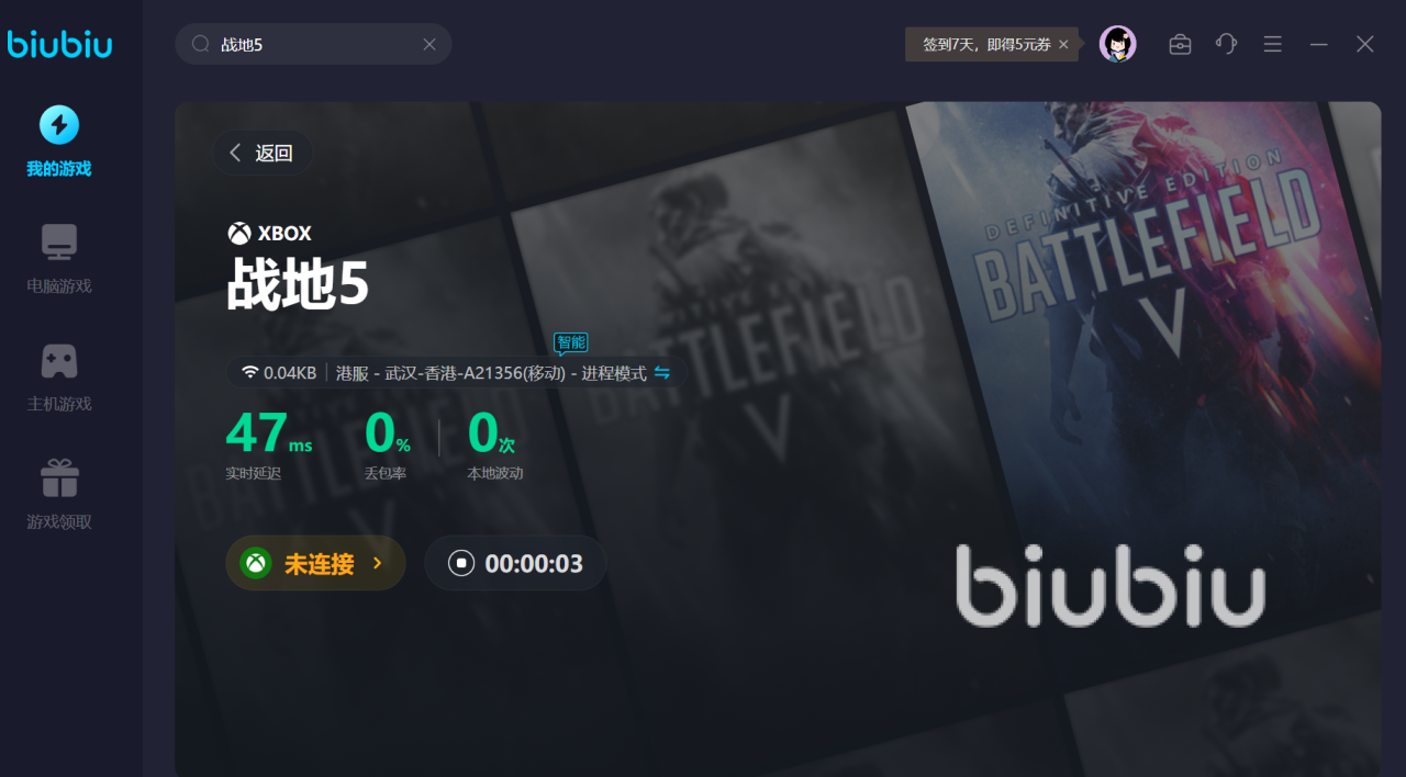 战地5由于是外国引进的游戏,因此在区服方面也拥有国服以及外服,其中国服的网络较为稳定,即使不使用加速器的情况也能保持一个交好的游戏环境,但是外服的连接问题是比较严重的,这时候biubiu加速器的多区服覆盖功能就体现出来了,可以对外服进行全方面提速,加速以后玩家就不会经常出现频繁掉线的问题了,同时新人注册可以享免费加速24小时,以及新老用户使用兑换码【biubiu不卡顿】均可以获得3天免费加速。