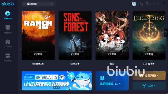 成功下载以后玩家可感受biubiu加速器的超低延迟,有效告别掉线以及卡顿等问题。玩家不管平时只喜欢玩牧场模拟器这种益智类型的,还是喜欢一些大型对战性的网游,都可使用这样的一款app来解决卡顿。从来没有使用过的玩家也不需要担心,它的使用方法非常的简单,只要正确搜索游戏的名称,就有相应的加速按钮,在完成了添加以后,可在“我的游戏库”当中,不需要搜索就能直接加速。