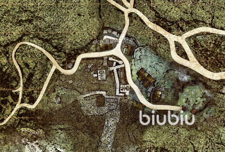 玩家在火山岛营地附近就可以找到温泉村,具体的地点你可以参照插图中给出的地图详情,即便你不刻意去的话,游戏的后期你依然会跟着主线来到这个地方。你在前往火山岛的路上,必定会遇到一个叫做古斯塔夫的老人,他称自己腰有些病,先随便给他点药,他会十分感谢的邀请去他家做客。
