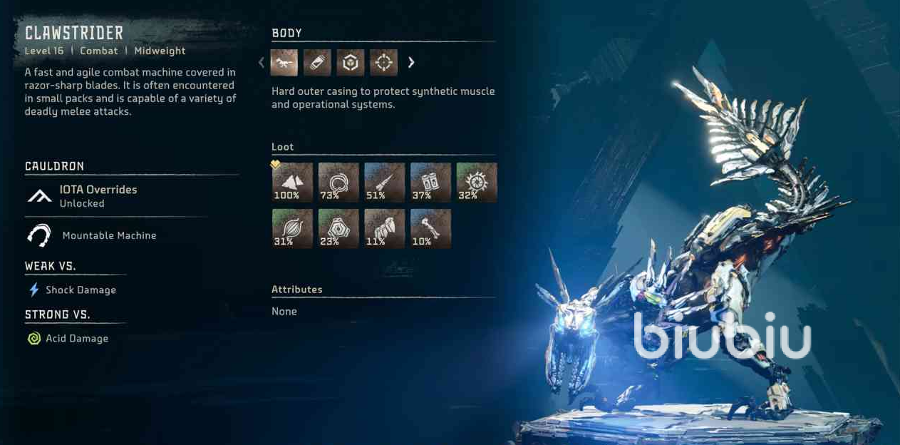 那么猛爪兽除了掉一些常见的素材之外,还有什么用处呢?如果你在主线完成了坩埚任务之后,可以超控这些敌人,让其成为你的地面坐骑。超控时不能被敌人发现,蹲伏潜行从背后慢慢靠近,然后按E键就能控制它了,每个被超控的机械也会有自己的耐久,被攻击后会损失这些耐久,你可以消耗机械零件来进行修复。