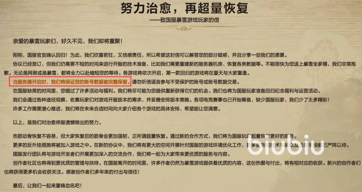 至于大家关心的数据方面的内容,暴雪也是正式的承诺了会在服务器开启的同时,将账号资料完整的保留下来,让大家不用再害怕数据被清空的问题。