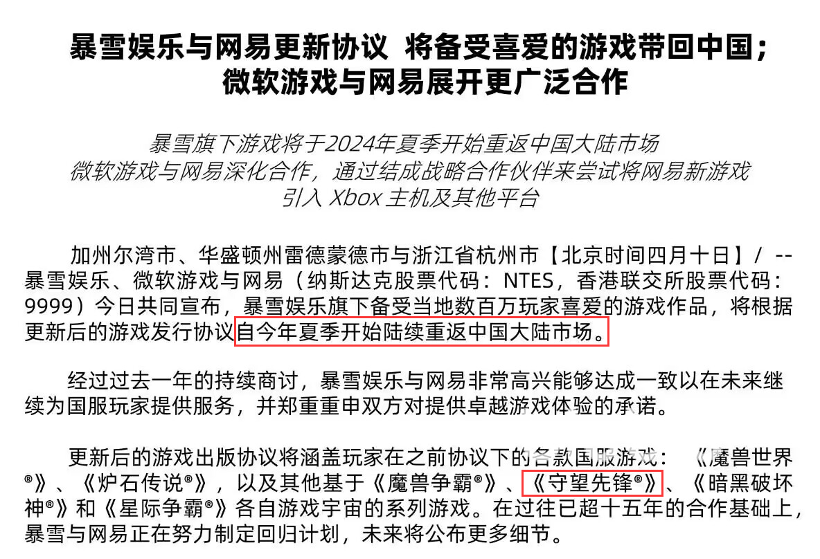首先根据游戏方发布的相关情报来看,暴雪全家桶是确定全部回归的,其中就有守望先锋。但是回归时间上会有次序之分,具体重新上线时间还需要等待后续消息。