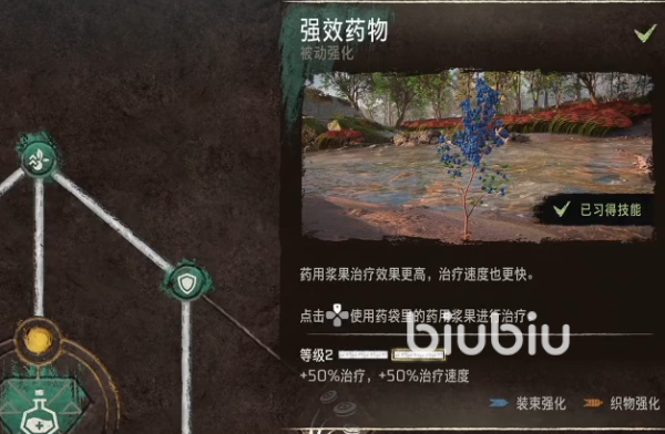 接着考虑到一些高难度的玩法,可能回血需求量比较大,所以像强化药物这种技能就可以开始学习了。潜行方面建议可以点一些增加自己角色隐蔽性的技能,比如无声出击、低姿态等等,这样我们在进入战斗之前可以先偷袭两下,以此来增加我们的先攻机率。