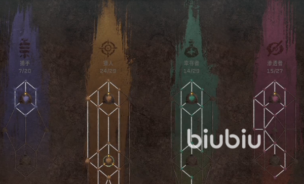 游戏中的技能总共被分成了六大块,分别是战士、捕手、猎人、幸存者、渗透者、机器大师。捕手与战斗时陷阱设置有关系,幸存者跟角色血量回复有关系,渗透者则是加强了一些潜行方面的技能,而机器大师则跟我们操控机器让他成为作战伙伴有关系。我们首先要决定角色是走近战路线还是远程的,因为在游戏前期点数有限的情况下消耗还是非常快的,并且获得的途径比较少。