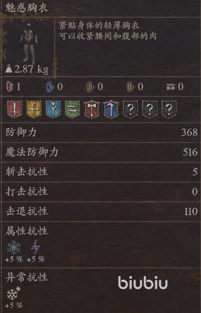这件服装是一件获得了特殊回护的盔甲,是战斗、斗士和魔剑士这几个职业专属的服饰,并且它目前是无法通过商店购买到的。另外当我们收集搜索心之证的数量到达150个之后,便可以去职业公会那里去兑换一件名叫魅惑胸衣的服饰。