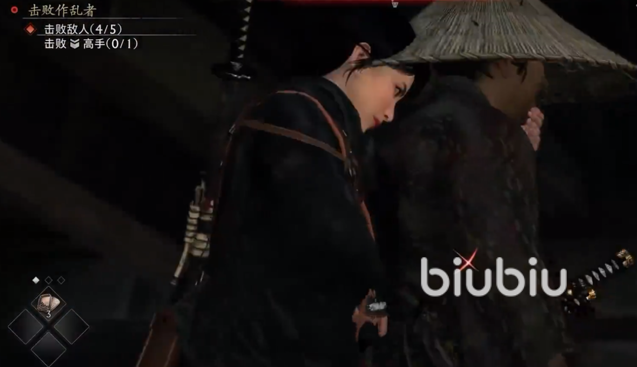 这个章节的故事主要发生在横滨,这也是游戏里面的第二张大地图,这里需要我们前往该地区,完成击败作乱者的任务。进入目标村落后这里面屋子比较多,利用半蹲的姿势进入村子,旗帜点附近就有怪物了,靠近之后从背后偷袭就可以击杀这些敌人。我们用同样的方式来击败小兵,但是里面会有高手也就是精英怪的存在,所以先把他吸引过来再击杀。
