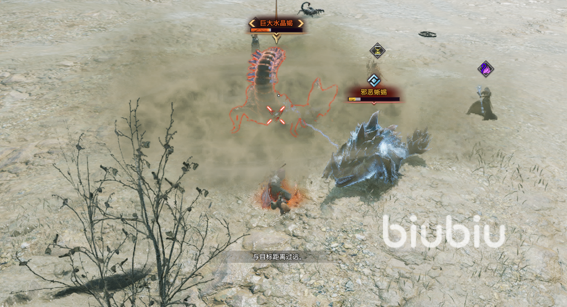 第二个是击杀5个困进陷阱里的邪恶蜥蜴,这种小怪在沙漠地图随处可见,只要在击杀时先把陷阱布设好,再通过拉怪将它们引入陷阱后再击杀就行了,操作比较简单没什么难度。