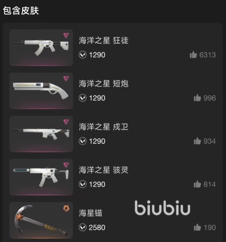 鱼缸套就是一套“海洋之星”主题的外观,具体的内容可以根据插图来对比,整体来说武器配色都比较具有海洋梦幻色彩。如果你喜欢这个风格的话,之前错过的可以尝试入手一份。