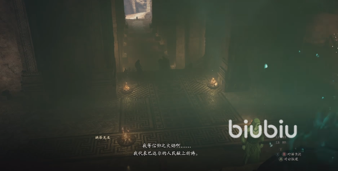 你可以打开油灯查看在殿内朝拜的各个NPC,可以看到右手楼梯边的赫曼符合描述,直接拔出武器或者擒拿,都将触发对话,然后刺客就会被抓住。如果你抓错了人,那么女王纳蒂尼亚会在剧情中死亡,梅内拉则会被流放到火山岛营地,不过你如果拥有龙之脉动可以在墓地中复活女王,弥补这个错误。