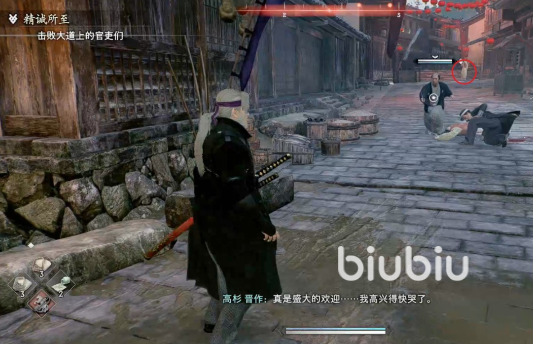 玩家进入到樱屋后,需要和里面的高杉晋作进行对话,他会对我们提出想去中华街吃饭。这时候我们就要与高杉晋作一起步行前往中华街。这里需要注意我们在前往中华街的路上,会遇到一些烧杀抢掠的官吏及其随从,这些人我们也是需要消灭的。