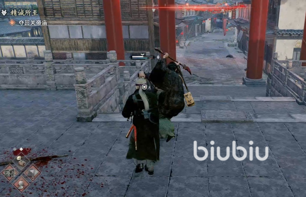 然后玩家要在中华街的大街上,找到一位穿着黄衣服的NPC,并且与他对话来了解目前的情况,这时候npc就会向我们描述这些官吏们的“罪行”。在清理完这些人之后,我们可以继续沿着中华街前进,清理沿途的敌人,直到到达关帝庙。当我们在关帝庙内击败所有敌人以后,任务就算完成了,将获得精诚所至的任务物品。