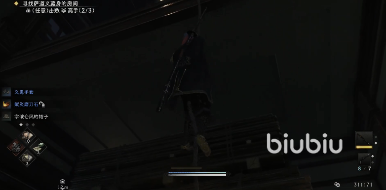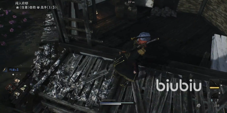 在这段时间会有一个选做任务,击败三个高手,你不必特意去找,因为能在前往任务目标的路上遇到他们,不过你也可以一直绕视野避开他们。往建筑的一直走你会发现到处都是敌人,还是以刺杀为主,不要直接正面进行作战。另外这里的每个玄关处,几乎都有丝线机关,所以得谨慎潜行。