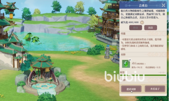 利用建造时间的空档,我们为自己挑选一个心仪的双修对象,通过送礼物把好感度提升到,亲密点数350以上即可。这里需要注意送礼受赠送点数是有限制的,所以送礼要集中一个角色赠送,这样才能提高游戏效率。