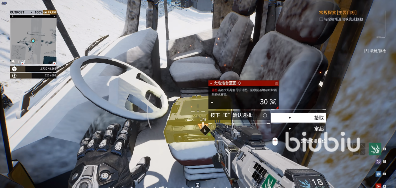 首先我们来到寒风高原,然后来到前哨左边,这里会有一个凹坑,跑过去就能捡到冰冻炮台蓝图。然后来到郊区据点可以找到下挂自动炮塔蓝图,接着在前哨左边直走会发现一个三层小木屋,进入房间来到三楼阳台旁边就可以找到。之后我们来到巨冰湖前,在前哨右前方的位置有两辆货车,第一辆货车的驾驶室里有火焰炮台蓝图,第二辆车的车斗有其实机甲蓝图。