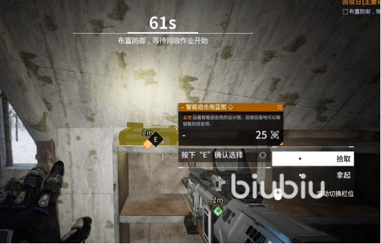 另外在打回收日的时候可以注意一下,在最前方阵地的右边有一个二层小木屋,需要是带有车库的房子,才能拿到智能迫击炮蓝图。如果不是的话,就需要等下次再来看看。若是来不及捡或者蓝圈不够大的话,捡不到也没有关系,这张蓝图在郊区据点的小木屋也会有概率刷出来。