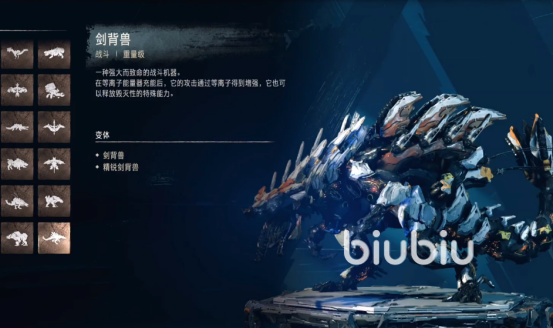 剑背兽是一类强大的战斗机器,它们会使用等离子等武器进行战斗,并且会有变异体精锐剑背兽。它们在被摧毁组件时会产生爆炸,如果组件没有被摧毁就可以保存下来,并且我们可以从中获取贵重资源。